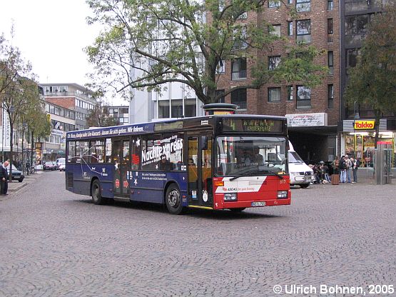 O 405 N² der ASEAG, Wagen 817, gerade den als Fußgängerzone ausgewiesenen