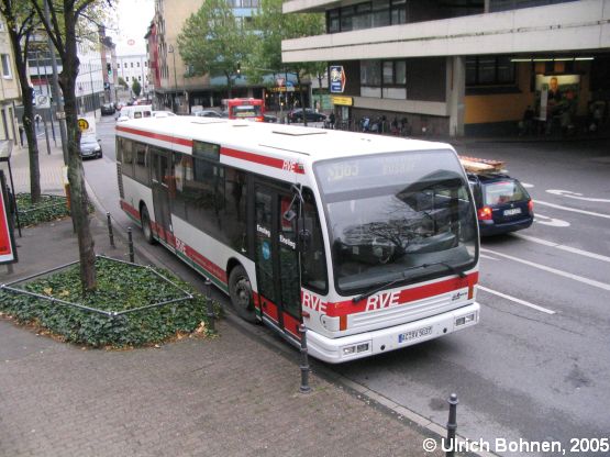 Aus einer höheren Position heraus konnte der Wagen 5037 der RVE, ein Den Oudsten B 96 DL 595, am Aachener Bushof aufgenommen werden.