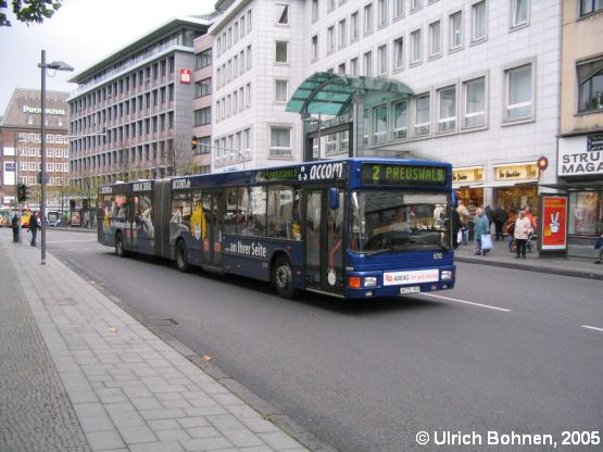 Einer von 18 (!) Bussen mit einer Vollwerbung für den lokalen Telefonanbieter ACCOM ist der Wagen 870 der ASEAG, ein MAN NG 262 des Baujahres 1999. Aufgenommen werden konnte der KOM am Aachener Elisenbrunnen.