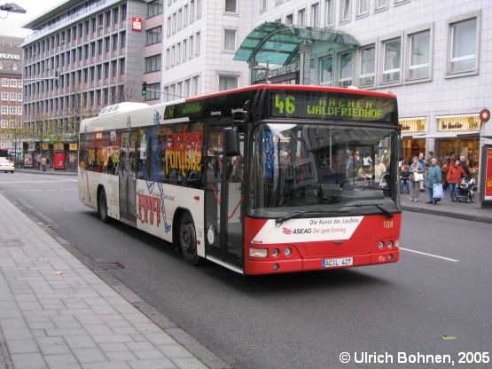 Auch Volvo 7000 gehören in recht geringem Umfang zum ASEAG-Fuhrpark. Einer der Volvo-Vertreter ist der Wagen 108.