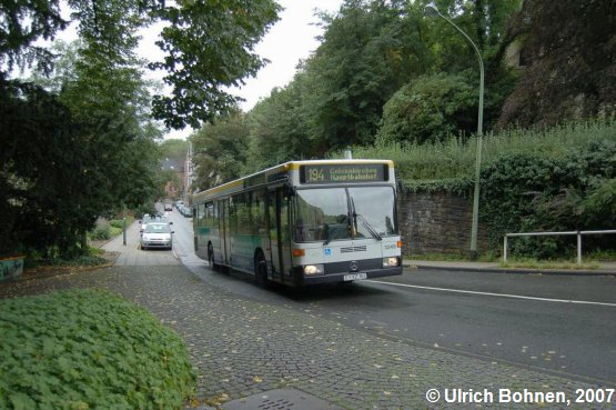 Wagen 3249 der EVAG bezwingt gerade die Steigung auf der Passstraße in Essen-Steele.