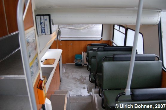Damit der Bus flexibler eingesetzt werden kann, wurde im hinteren, unteren Bereich eine kleine Küchenzeile eingerichtet - ansonsten kann der Bus komplett zur Fahrgastbeförderung eingesetzt werden.