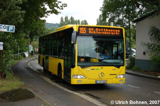 Wagen 4005 der EVAG wartet an der Ampel vor der Kampmannbrücke in Essen-Kupferdreh.