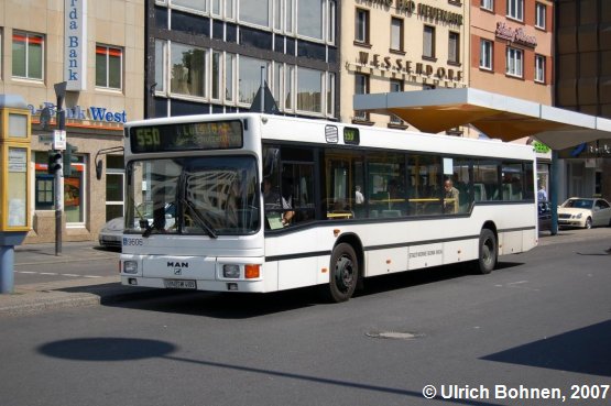 Ein Großteil der 1996 beschafften Busse der SWB wurde in weißer Lackierung ausgeliefert, so wie dieser MAN NL 222, der die Wagen-Nr. 9606 trägt.