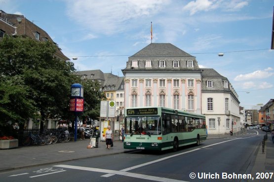 Noch einmal das Titelfoto: Wagen 9709 vor dem Bonner Alten Rathaus an der Haltestelle Markt.