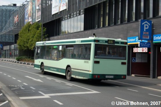 Er fährt nun weiter zum Bonner Stadtwald. Charakteristisch für viele Bonner Busse: Der Dachauspuff, durch den allerdings ein Sitzplatz in der letzten Reihe verloren geht.