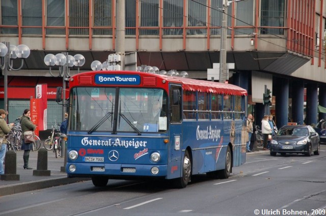 Der ehemalige Wagen 8616 der SWB dient seit dem Jahre 2000 als Cabrio-Stadtrundfahrt-Bus und passiert hier gerade den Hauptbahnhof.