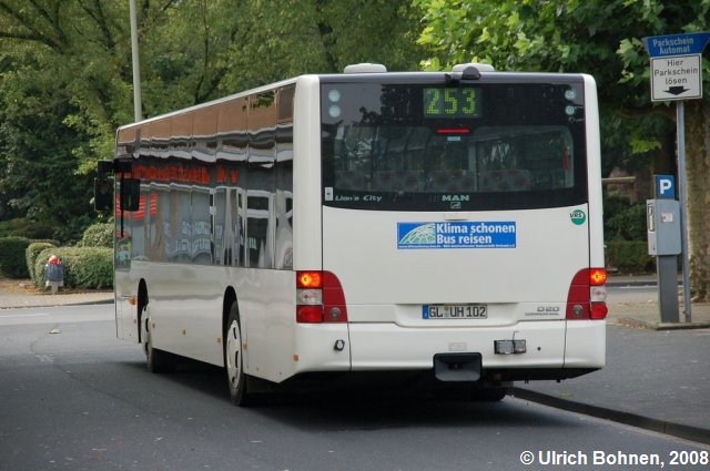 Grund für die hohe Motorleistung ist die Tatsache, das dieser Bus als Zugfahrzeug für einen Personenanhänger dient. Der Anhänger wird jedoch lediglich an Schultagen in den Spitzenzeiten eingesetzt. Hier kann man gut die Anhängerkupplung erkennen.