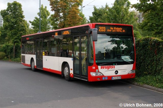 Hier die aktuelle Wupsi-Lackierung in weiß-rot. Wagen 58 präsentiert das Farbschema in Leverkusen-Opladen.