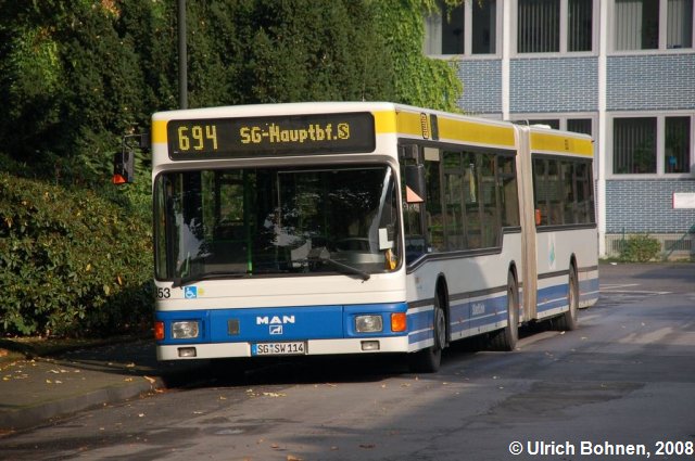 Am Leichlinger Busbahnhof konnte dieser MAN A 11 der Stadtwerke Solingen (SWS) fotografiert werden.