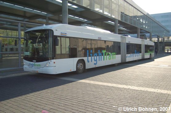Jetzt steht der Bus direkt neben der Stadtbahn-Station Arena/Messe Nord.