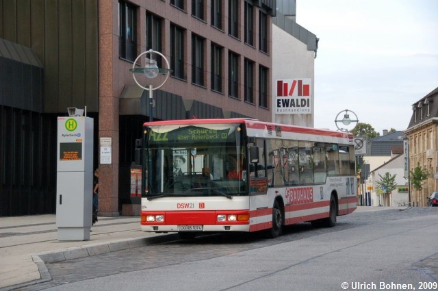 An der Haltestelle Aplerbeck U im gleichnamigen Dortmunder Stadtteil konnte dieser MAN NL 223 mit der nur kurzzeitig verbauten Frontvariante fotografiert werden.