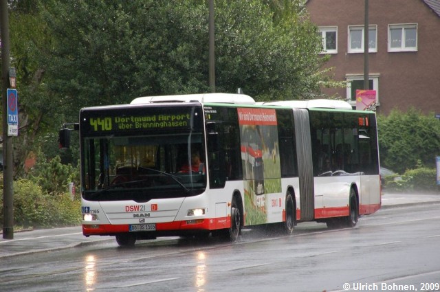 Wagen 1165 peitscht durch den Regen - so fotografiert in Dortmund-Brünninghausen.