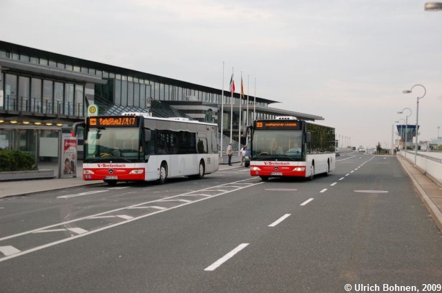 Die VGBreitenbach aus Hamm betreibt auch diverse Parkplatz-Pendelverkehre auf dem Gelände des Dortmunder Flughafens. Hinten rechts ist der Flughafen-Tower zu sehen.