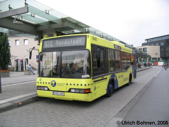 Hier sehen wir einen Neoplan N 4011 der Firma Laschke aus Euskirchen, der im Stadtbussystem der Stadt Euskirchen eingesetzt wird. Aufgenommen wurde der Bus am Euskirchener Bahnhof.