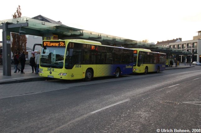 Die bis dahin eingesetzten RVK-Fahrzeuge für das Stadtbus-Netz in Euskirchen wurden im Juni 2008 durch neun EvoBus-Mercedes O 530 Citaro K (zwei davon oben im Bild am Euskirchener Bahnhof) und acht Citaro in der 12-Meter-Ausführung ersetzt.