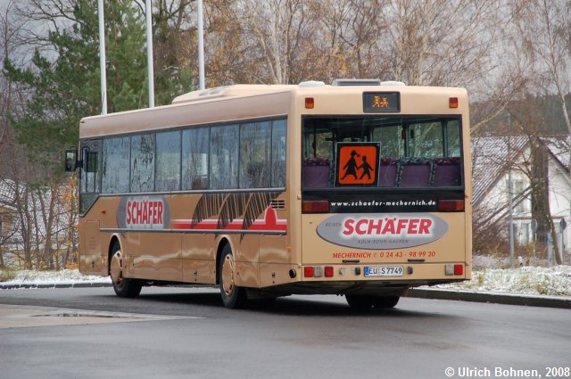 Dies ist die sehr ansprechende aktuelle Lackierung von Schäfer-Reisen. Das Bild zeigt einen EvoBus-Mercedes O 407, der von 1996 bis 2005 bei der RAB in Ulm verkehrte.