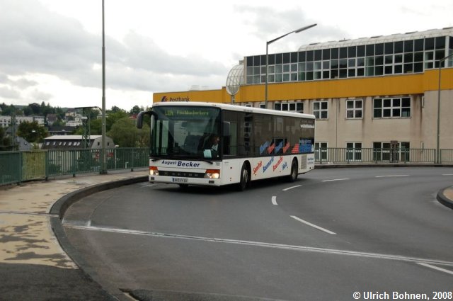 August Becker aus dem Kreis Altenkirchen (Rheinland-Pfalz) setzt diesen EvoBus-Setra S 315 NF im Siegener Linienverkehr ein. Die Aufnahme entstand in der Nähe des Siegener ZOB.