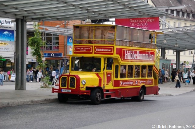 Zwischen der Siegener Unter- und Oberstadt verkehrt der sogenannte Hübbelbummler. Dieser auf alt getrimmte Doppeldecker fällt im Siegener ÖPNV doch etwas auf...