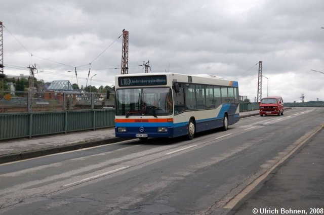 Die KVA (Kraftverkehr Alchetal GmbH) setzt mehrere gebrauchte Linienbusse im Siegener Stadtverkehr ein: Dieser EvoBus-Mercedes O 405 N2 verkehrte aufgrund seiner Lackierung vorher unverkennbar im westlichen Nachbarland Luxemburg.