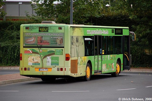 Zusätzlich zur ohnehin schon auffälligen Grundlackierung in gelb wurde der Bus noch mit einer ins Auge fallenden Multiwerbung versehen.
