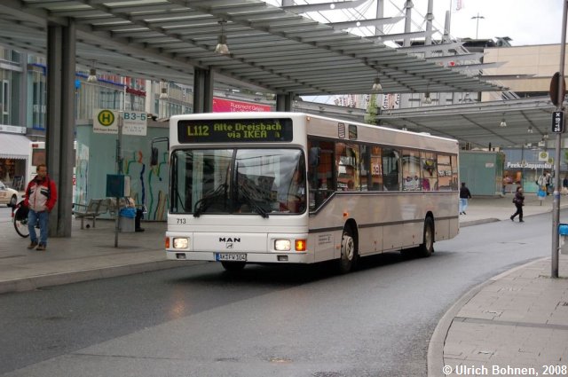 Der Innenraum des Europa-Linienbusses ist über eine Stufe zu erreichen.