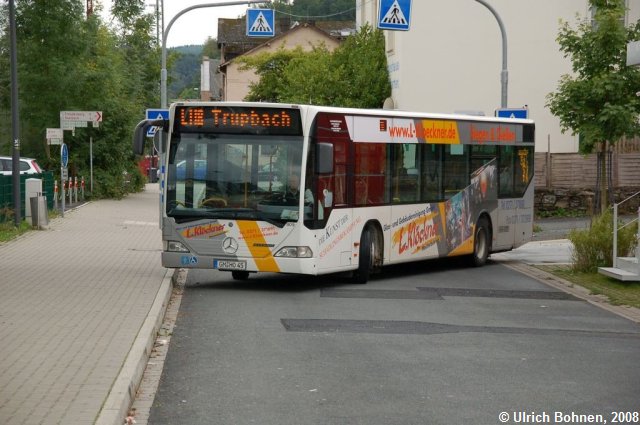 Eine auffällige Vollwerbung für ein Dienstleistungsunternehmen weist dieser EvoBus-Mercedes Citaro von Ochsenbrücher auf.
