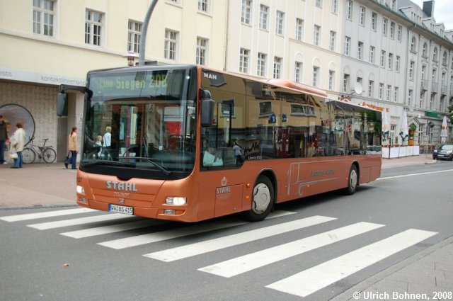 Stahl-Reisen aus dem rheinland-pfälzischen Bad Marienberg besitzt diesen MAN Lion's City, dessen auffällige Lackierung und Beklebung auf eine Vergangenheit als MAN-Vorführwagen hinweisen. Bei MAN trug er von 2005 bis 2007 die Zulassung SZ-FW 199.