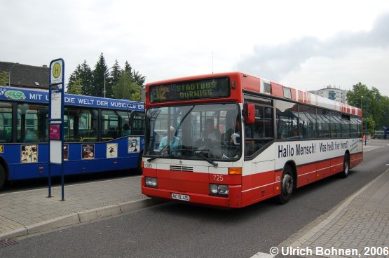 Hier nun der an Jung vermietete ASEAG-Wagen 725 an seiner Abfahrtshaltestelle in Richtung Eschweiler-Dürwiß.