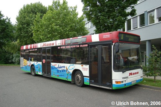 Bei diesem Fahrzeug handelt es sich um einen Volvo B 10 L, der der Firma Haas aus Stolberg gehört.