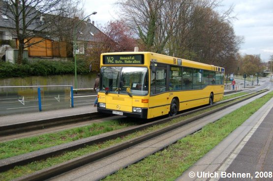 Der EVAG-Wagen 3265 befährt die Wittenbergstraße in der Gegenrichtung.