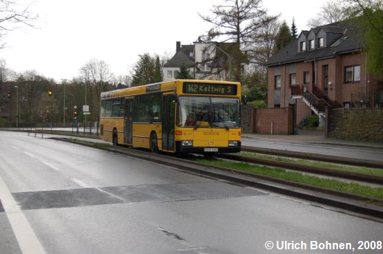 Gerade ist dieser Bus auf die Spurbusstrecke Wittenbergstraße eingebogen.