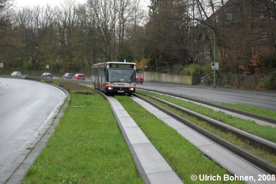 Wagen 3764 in der CityExpress-Lackierung kommt gerade die Wittenbergstraße herunter.