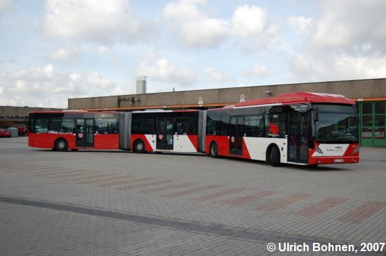 Bisher sind es zwei in Aachen - noch dieses Jahr kommen sechs weitere Exemplare dazu: Die Rede ist von den knapp 25 Meter langen Van-Hool-Doppelgelenkbussen des Typs AGG 300. Hier präsentiert sich Wagen 194.
