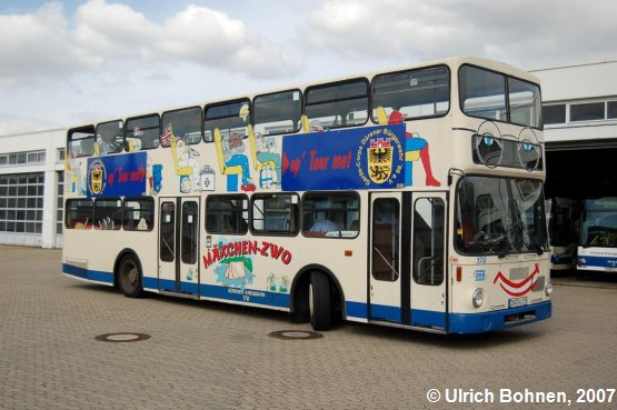 Auch zwei MAN SD 200, die ursprünglich bei der BVG in Berlin liefen, befinden sich im DKB-Fuhrpark. Hier zeigt sich Wagen 178 alias "Mäxchen zwo". "Mäxchen (eins)" existiert ebenfalls. "Mäxchen zwo" wurde 1983 gebaut, sein Bruder ein Jahr später.