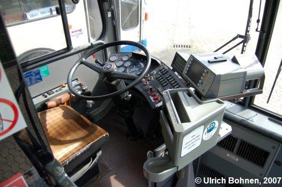 Ein Blick auf den Fahrerarbeitsplatz des 24 Jahre alten Busses.