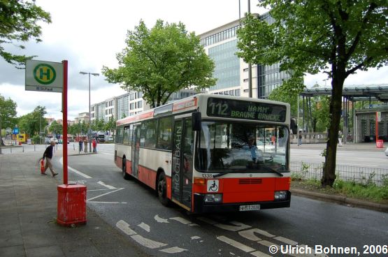 Diese Aufnahme eines Mercedes-Benz O 405 N1 der Hamburger Hochbahn entstand am U-Bahnhof St. Pauli ganz in der Nähe der Reeperbahn.