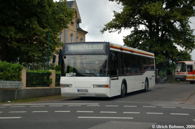 Der vorne ziemlich tief liegende Bus macht sich als Schulbus nun auf seine Reise.
