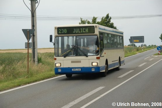 Dieser MAN SL 202 hört auf das Kennzeichen DN-L 166 und konnte auf dem Weg nach Jülich aus einem anderen Bus heraus fotografiert werden.