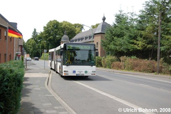 Einer der drei MAN A 23 von Lövenich fährt hier gerade die Haltestelle in der Nähe des Nörvenicher Schlosses an.