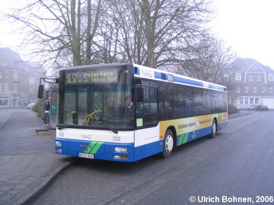 Zum Aufnahmezeitpunkt am 02.01.2006 war der Wagen 5532 der NIAG, ein 2002er MAN A 21 (NL 223), noch mit einer Lottoreklame versehen; mittlerweile könnte diese schon entfernt worden sein.