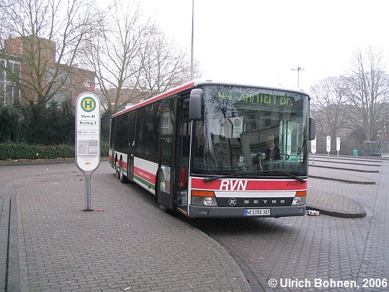 Die anderen Busse haben den Bahnhof bereits verlassen; lediglich der RVN-Wagen 387 harrte noch ein wenig aus.