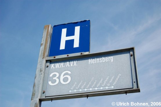 Das Haltestellenschild für die West-Linien 436 und SB3. Es steht jedoch lediglich "36" auf dem Schild. Außerdem ist hier noch die alte Bezeichnung der West, Kreiswerke Heinsberg (KWH), zu finden.