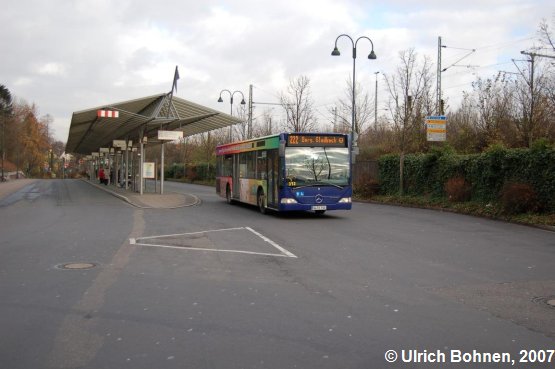Einen Teil des Opladener Busbahnhofes sowie einen Citaro der Firma Pütz aus Bergisch Gladbach sieht man auf dieser Aufnahme.