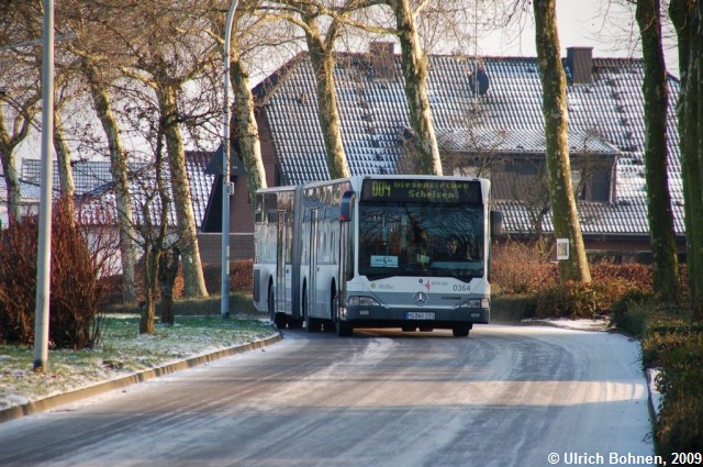 Die auf der Fahrtzielanzeige zu lesende Endhaltestelle Giesenkirchen Schelsen wird der Wagen 0364 in wenigen Sekunden erreichen.