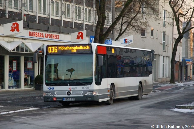 Seit Sommer 2009 ist die diesjährige Fahrzeuglieferung in Mönchengladbach unterwegs. Wagen 0905 konnte am Markt in Neuwerk fotografiert werden.