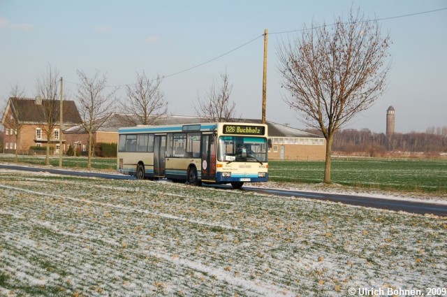 Ortsteil erreichen. Rechts sieht man einen der Wassertürme von Mönchengladbach.