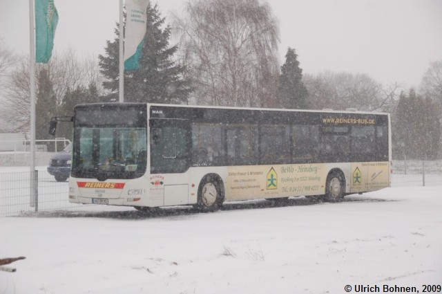 Ein weiteres Reiners-Fahrzeug verbringt die Wochenenden in der Regel an einem Feldrand in Geilenkirchen. Der MAN Lion's City trägt das Kennzeichen HS-RR 95.