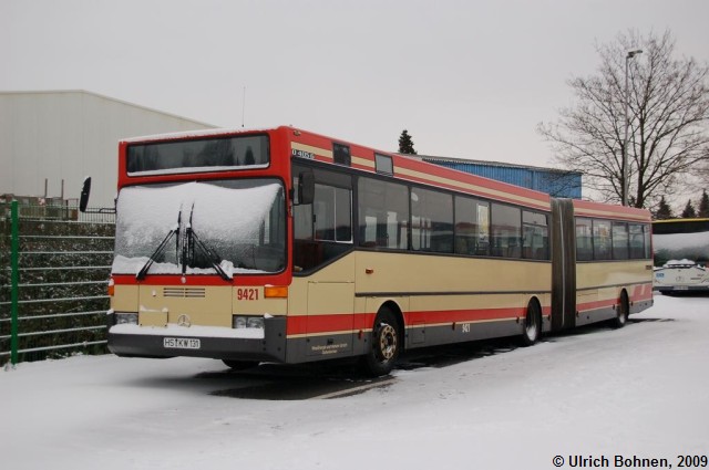 Im Herbst 1994 wurden zwei Mercedes-Benz O 405 G in Dienst gestellt. Wagen 9421 pausiert auf dem west-Abstellplatz in Heinsberg.