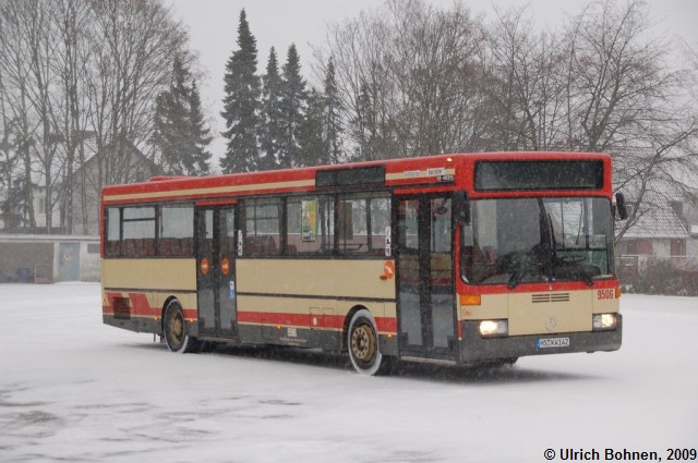 Ebenfalls aus der 95er-Beschaffungsserie stammt der west-Wagen 9506, der auf dem Betriebshof in Erkelenz fotogerecht positioniert wurde.